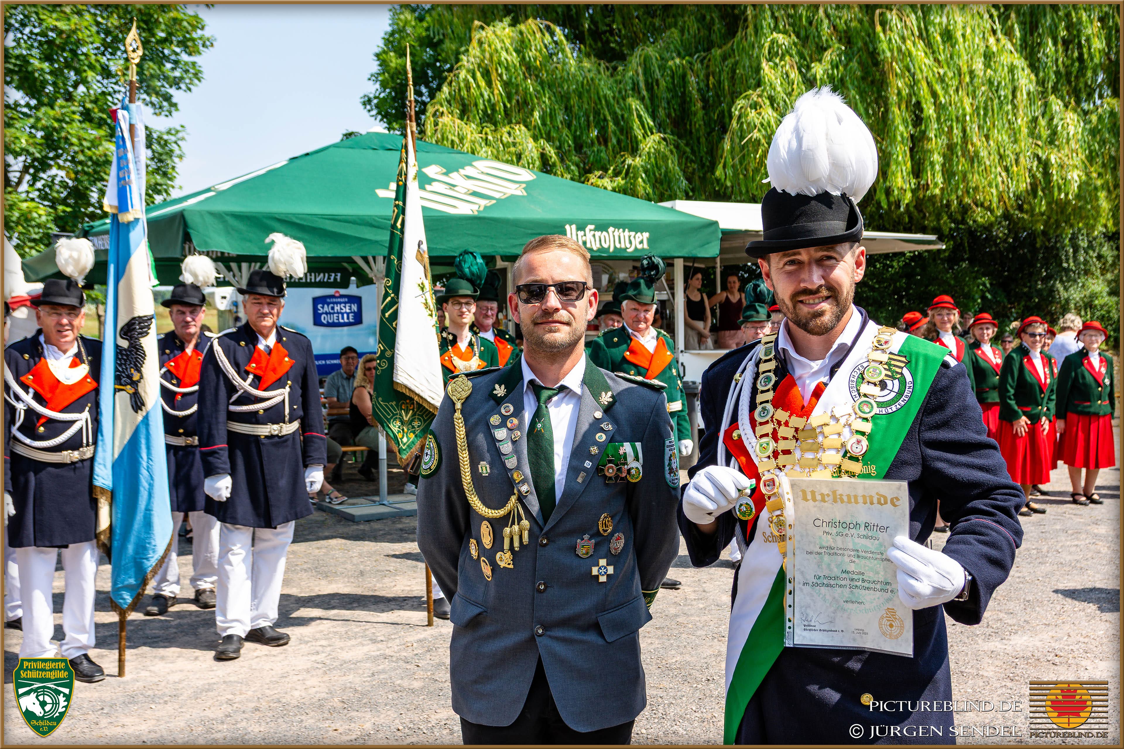 Für uns war es eine aufregende Zeit, in Begleitung des Bundesschützenkönigs Christoph Ritter das neue Schützenkönigspaar Peggy und Sven zu ehren.